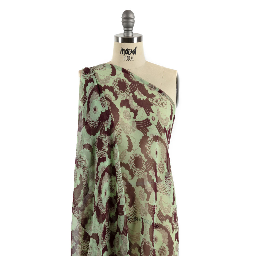Chocolate and Mint Flowers in the Sky Silk Chiffon