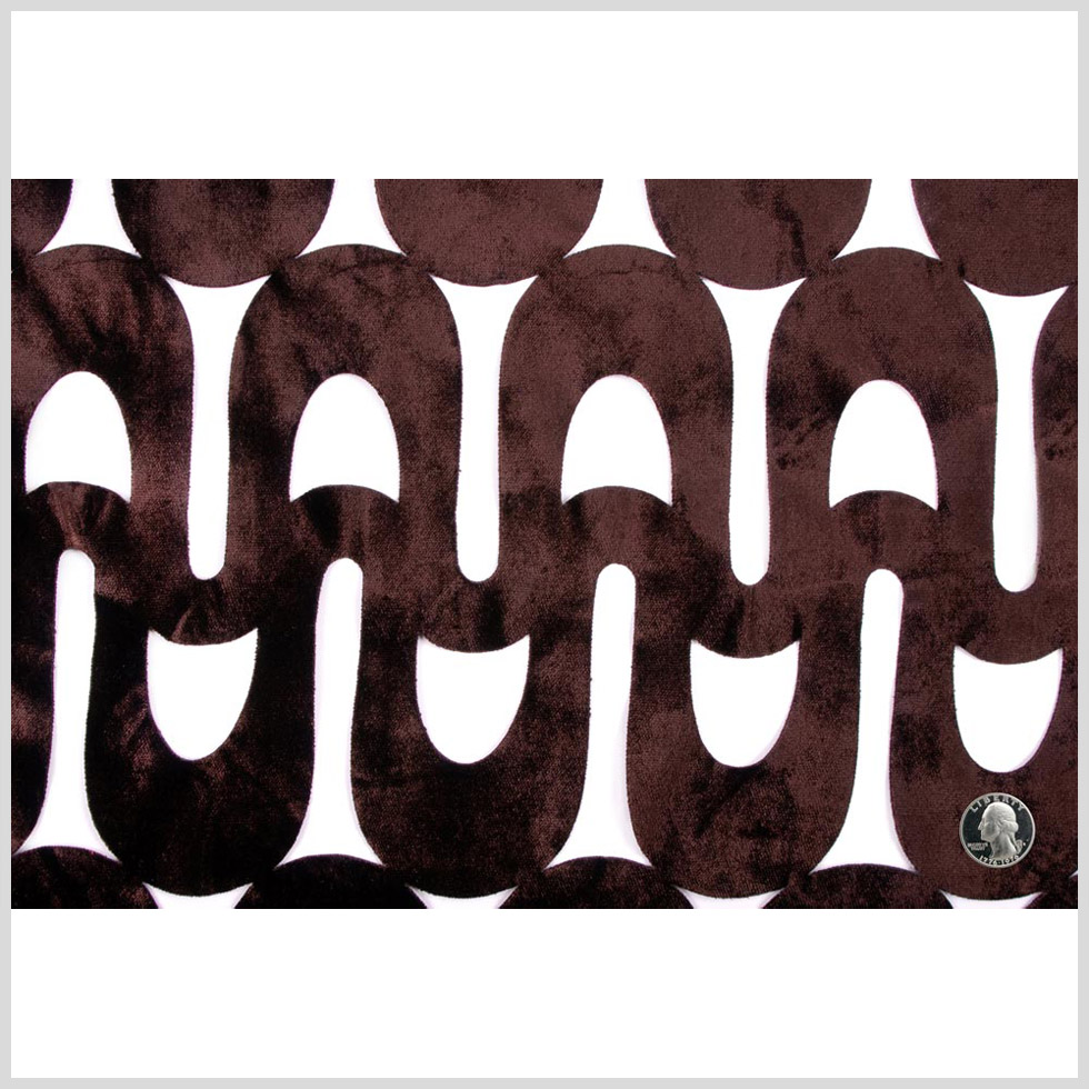 100% Polyester. Medium weight velvet. Large cut-out pattern. Suitable for upholstery, home accents and drapery.
