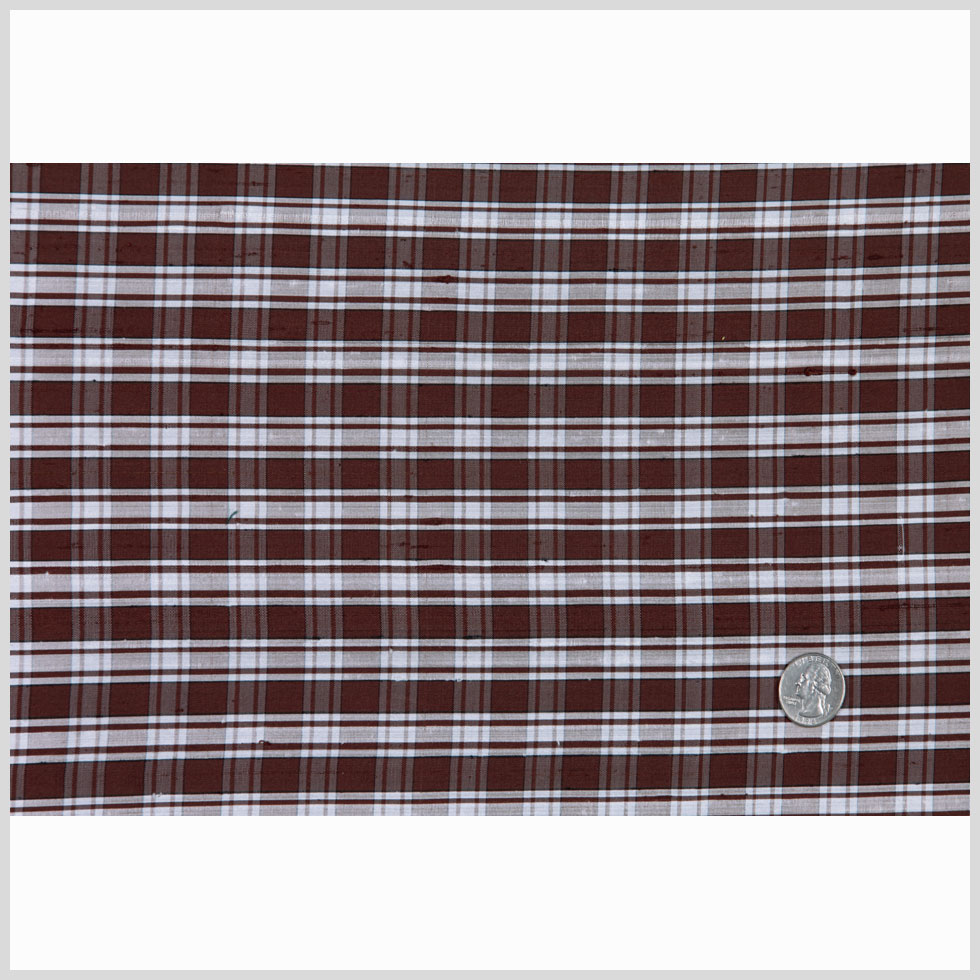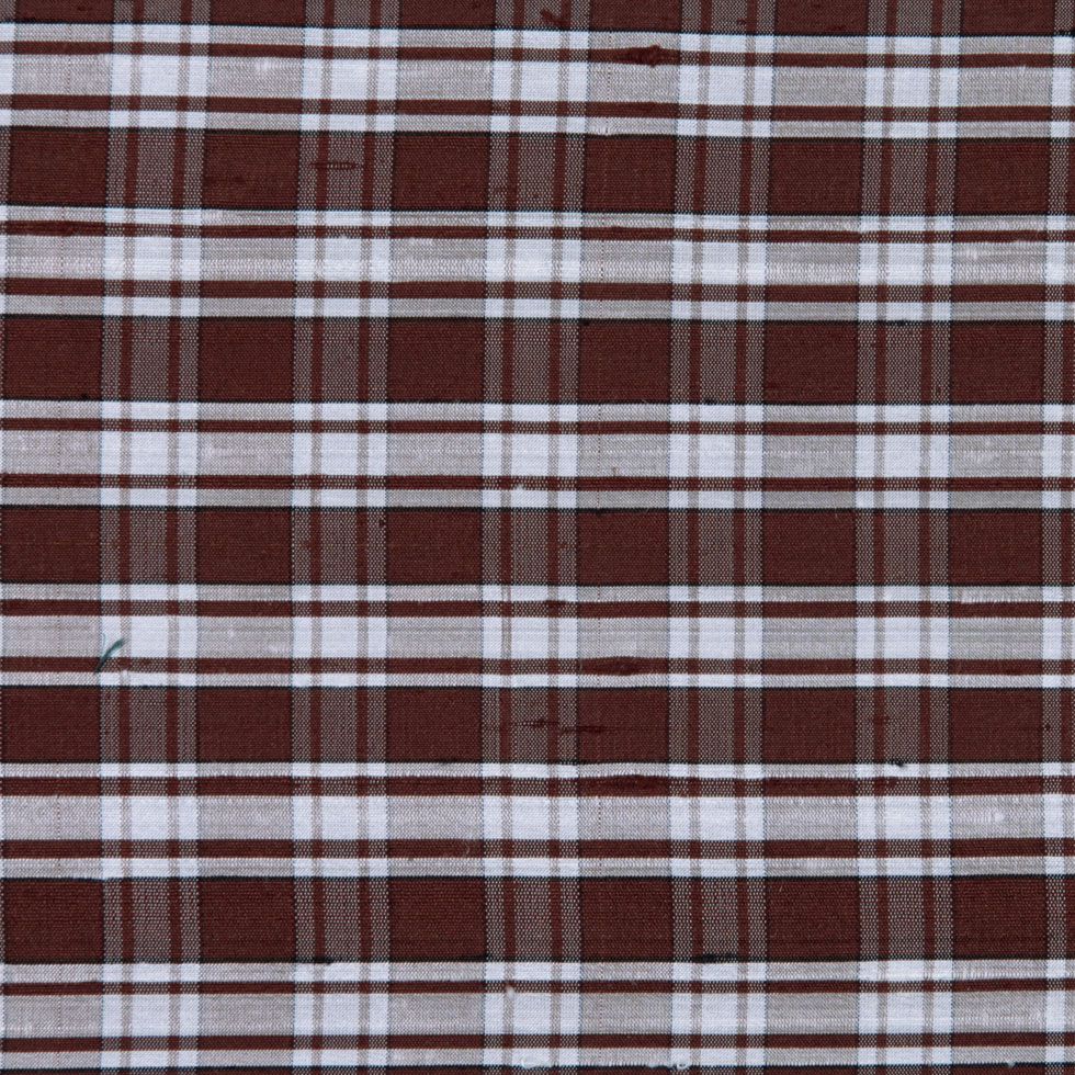A pretty silk dupioni with a woven plaid of chocolate brown against a white background. Use for classic blouses, dresses, handbag linings, home decor applications and more.