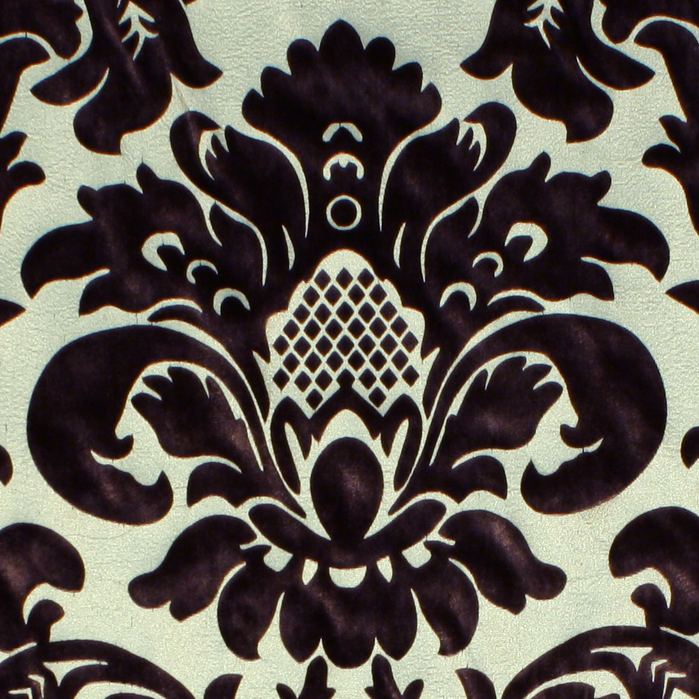 This is a cream silk velvet with a chocolate brown print creating the negative space of a beautiful classical floral pattern.