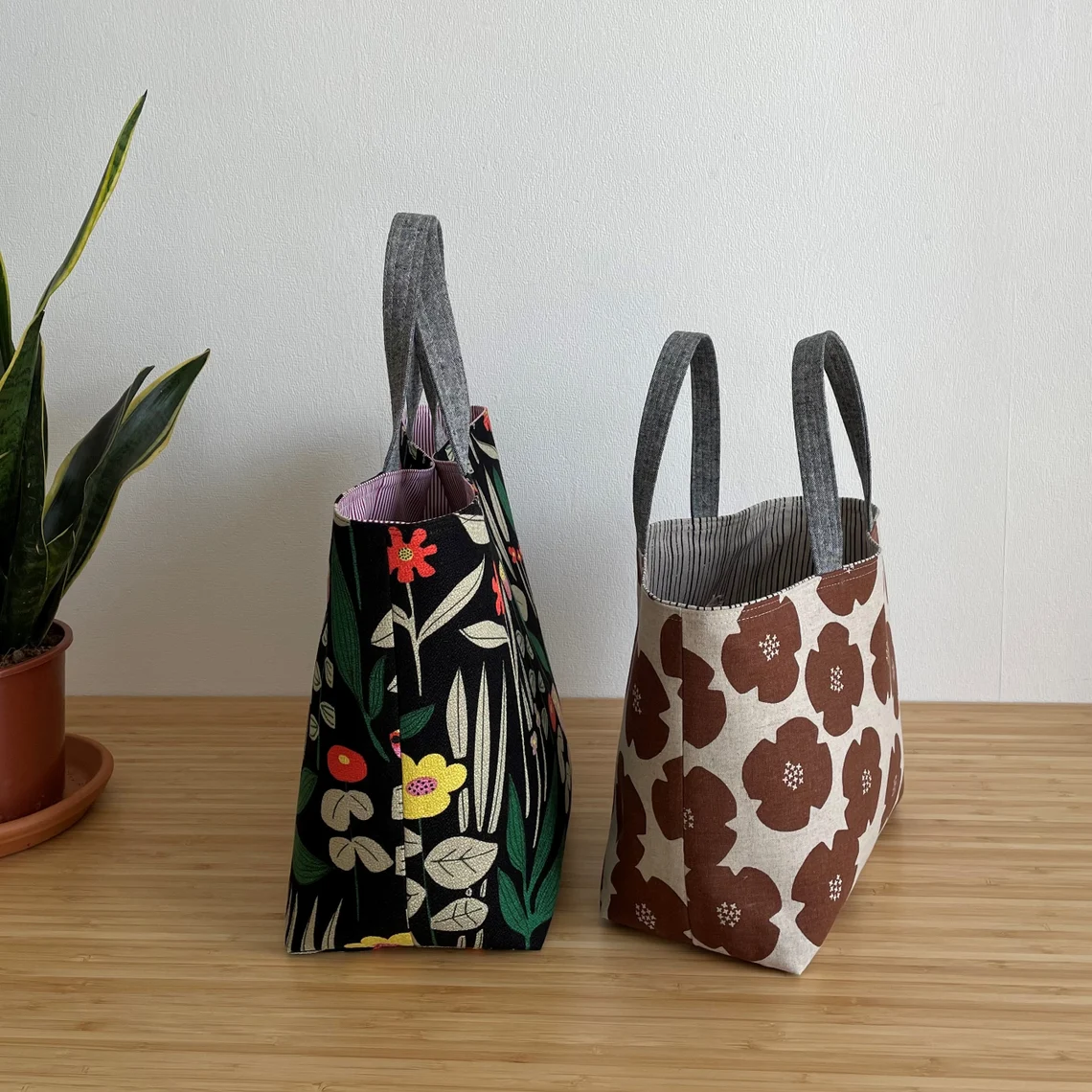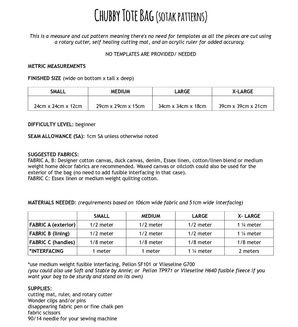 I have also recorded a step by step video guide on how to make these totes as well as fabric handles (links to videos in the pattern).