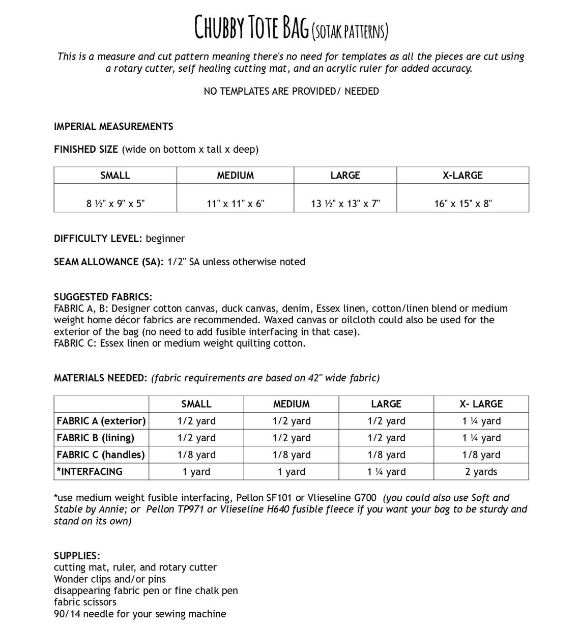 !!!!! Please note, this is a MEASURE AND CUT PATTERN meaning all pattern pieces are cut using cutting mat, rotary cutter, and ruler. NO TEMPLATES are provided to make this bag !!!!!