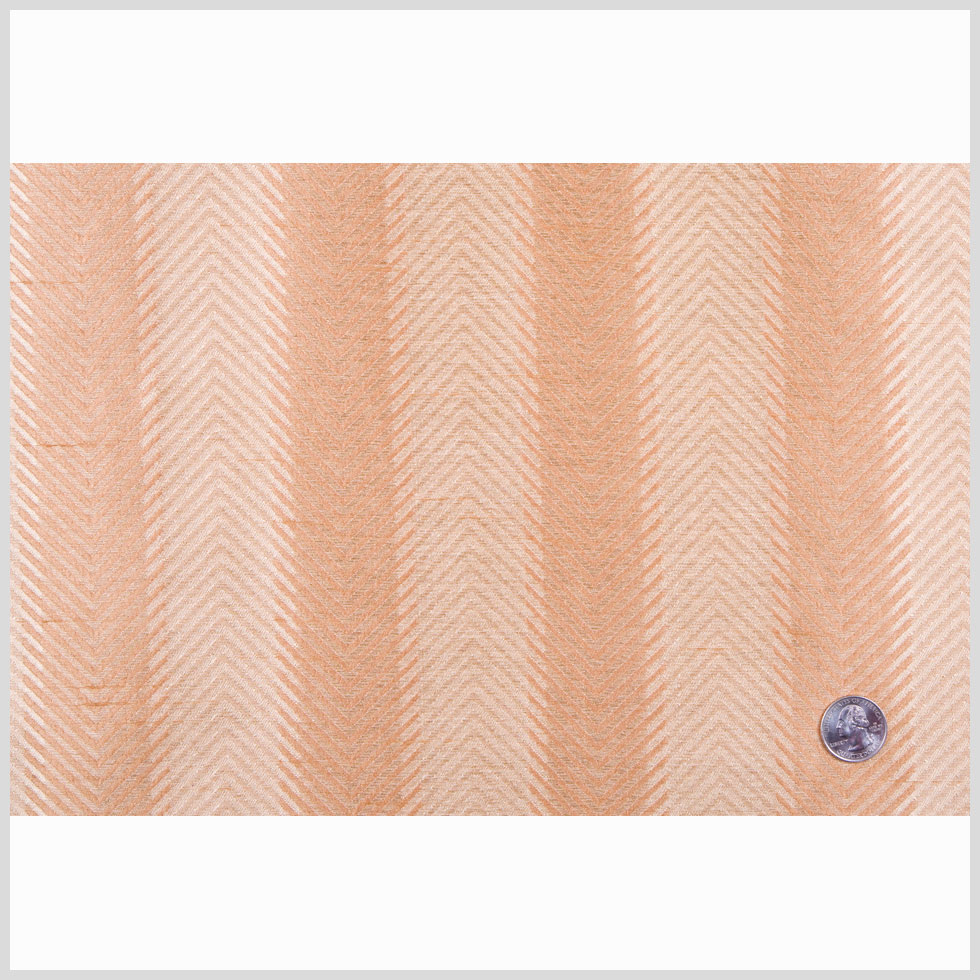 This is a polyester shantung with stripes in cinnamon and soft gold. Stripes are formed by a faux herringbone weave giving them a zig zag look. Lustrous, great for drapes.