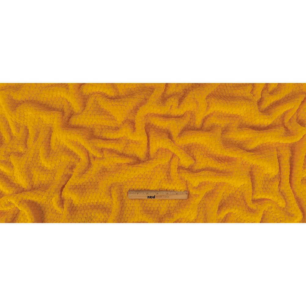 Packed with zesty style, our Citrus Plush Polyester Bubble Fleece is ideal for a bottomless mimosa brunch with your besties! In a chic yellow-orange coloring, super-soft fleece fibers are grouped in rows of bubbles for plenty of plush texture. Feel like a style superhero knowing this malleable fabric is OEKO-TEX® certified, meaning it is unquestionably eco-friendly. Restore a thrifted treasure with a fleece lining for extra insulation, fashion bomber jackets, hoodies, or cardigans for a textured, fuzzy look, or even create hats and scarves to prep for winter weather! Soft and opaque, a lining is not needed for most applications.MoodEarth Verified: This eco-friendly material is OEKO-TEX certified; tested independently and worldwide, the certification system evaluates finished, semi-finished, and raw textiles while thoroughly covering chemicals, harmful substances, and precautionary parameters. For more information on Mood's sustainability initiatives, check out MoodEarth here.