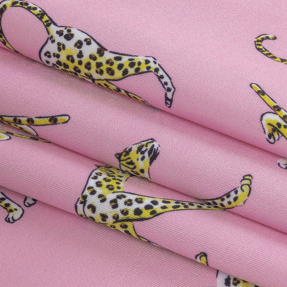 This Cradle Pink Cheetahs UV Protective Compression Swimwear Tricot with Aloe Vera Microcapsules is so fabulous, you might feel like you're cheetah-ing the system! Comprised with a combination of polyester super microfibers and lycra, here is a Max-Dri performance tricot providing a phenomenal 4-way stretch along with superb retention capabilities. Not only is this tricot supreme for articles of activewear such as leggings and shorts due to its high compression fabric structure improving athletic performance, but it is also a brilliant option for bathing suits as it comes complete with 50+ UV protection and Aloe Vera Microcapsules for skin hydration. Also, keep in mind that this material undergoes Antibacterial treatment which prevents stains and accruing bad odor. Note: Do not machine wash, tumble dry, iron, bleach, or dry clean this material. Hand washing is recommended. This material weighs 290gsm.