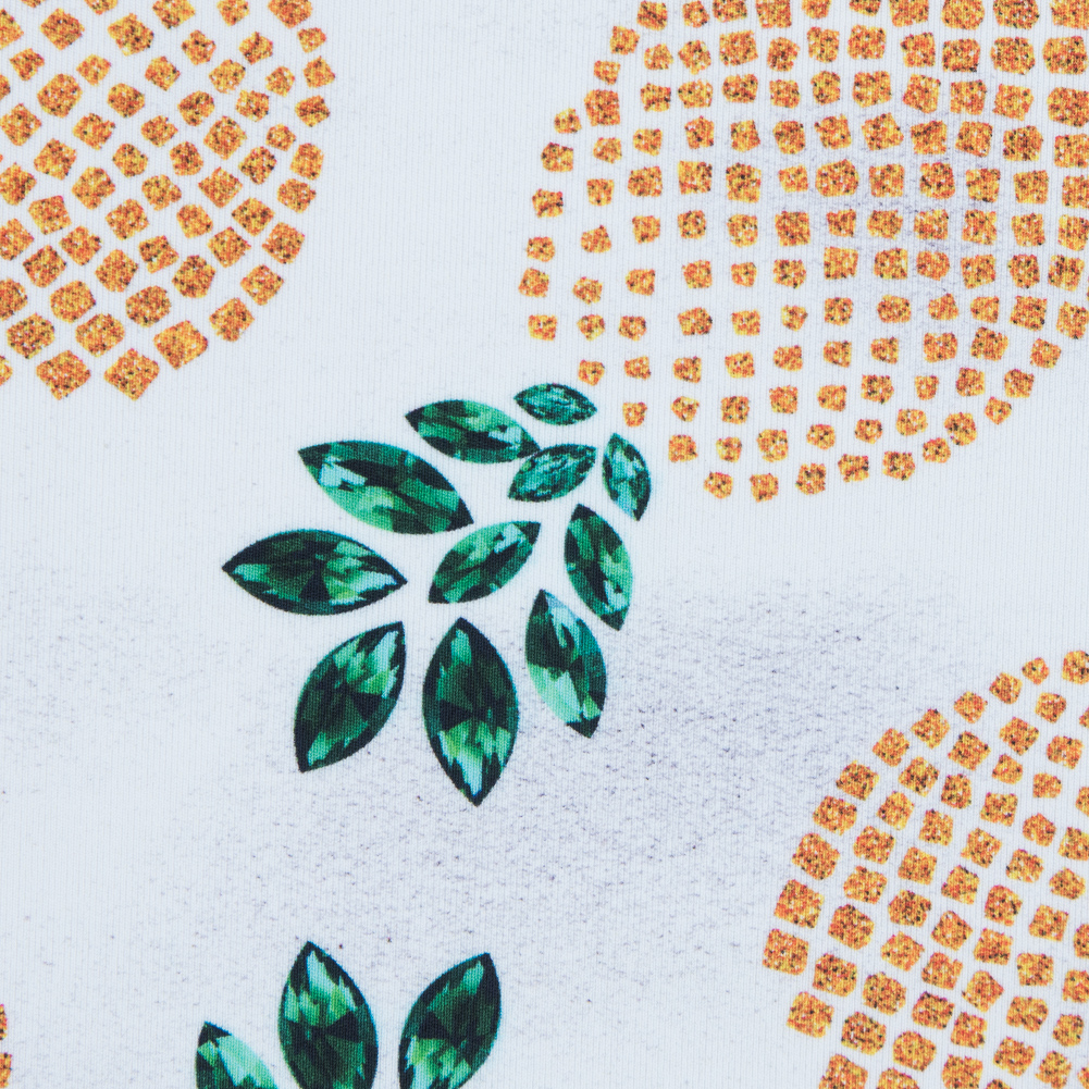 Look fine-apple in this White Pineapple UV Protective Compression Swimwear Tricot with Aloe Vera Microcapsules! Comprised with a combination of polyester super microfibers and lycra, here is a Max-Dri performance tricot providing a phenomenal 4-way stretch along with superb retention capabilities. Not only is this tricot supreme for articles of active wear such as leggings and shorts due to its high compression fabric structure improving athletic performance, but it is also a brilliant option for bathing suits as it comes complete with 50+ UV protection and Aloe Vera Microcapsules for skin hydration. Also keep in mind that this material undergoes Antibacterial treatment which prevents stains and accruing bad odor. Note: Do not machine wash, tumble dry, iron, bleach, or dry clean this material. Hand washing is recommended. This material weighs 290gsm.