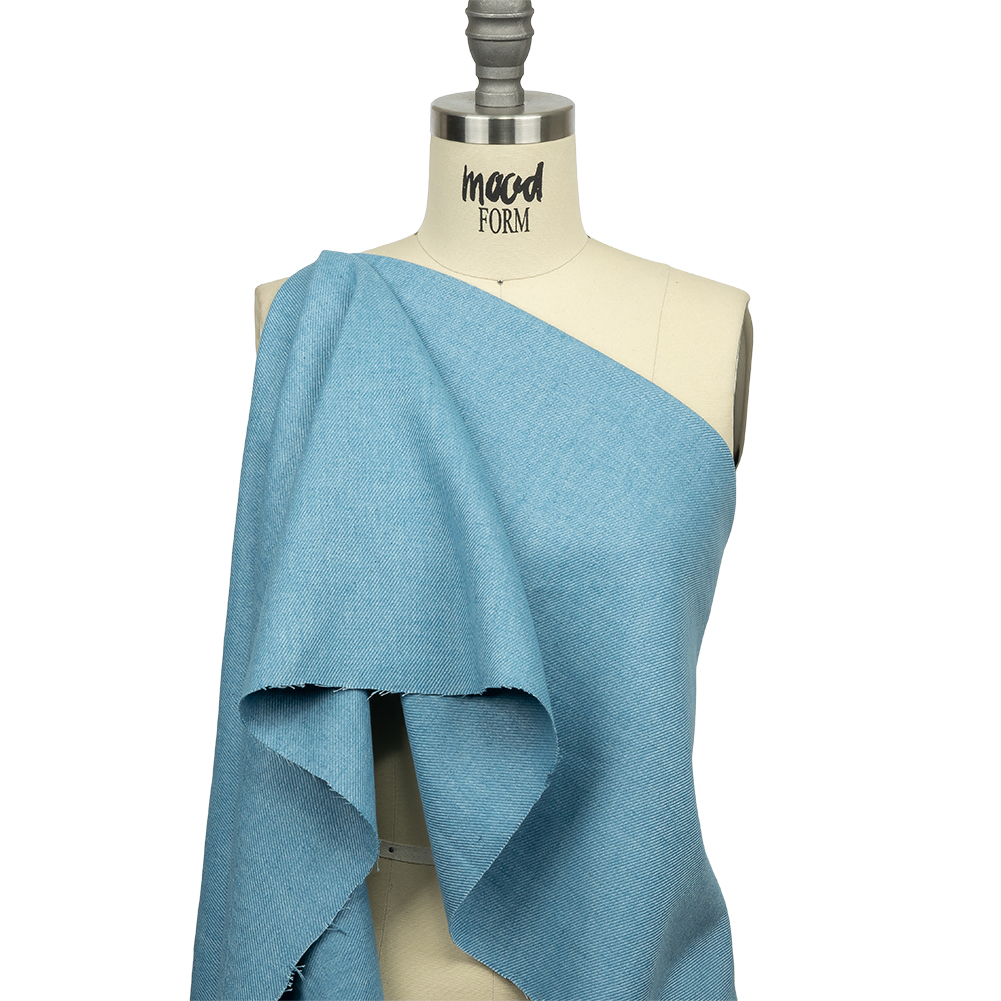 Relax and go to your happy place with this Cool Blue Heathered Linen, Cotton and Polyester Twill. This baby blue twill offers complete comfort with its full drape and softly ribbed texture. Create everything from statement blazers, pencil skirts, and chino pants, to sheath or A-line dresses, and more! Of a medium weight, this non-stretch fabric is opaque rendering the use of a lining optional.