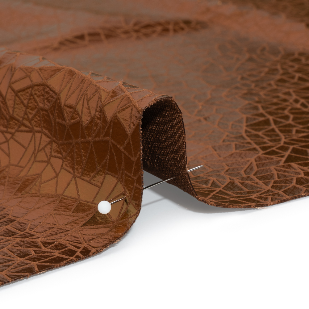 Create conversation pieces from this Copper Geometric Crackle Metallic Foiled Chenille! A metallic copper surface cracks like ice to reveal the plush texture of its brown chenille background, backed by a pebbly hand.