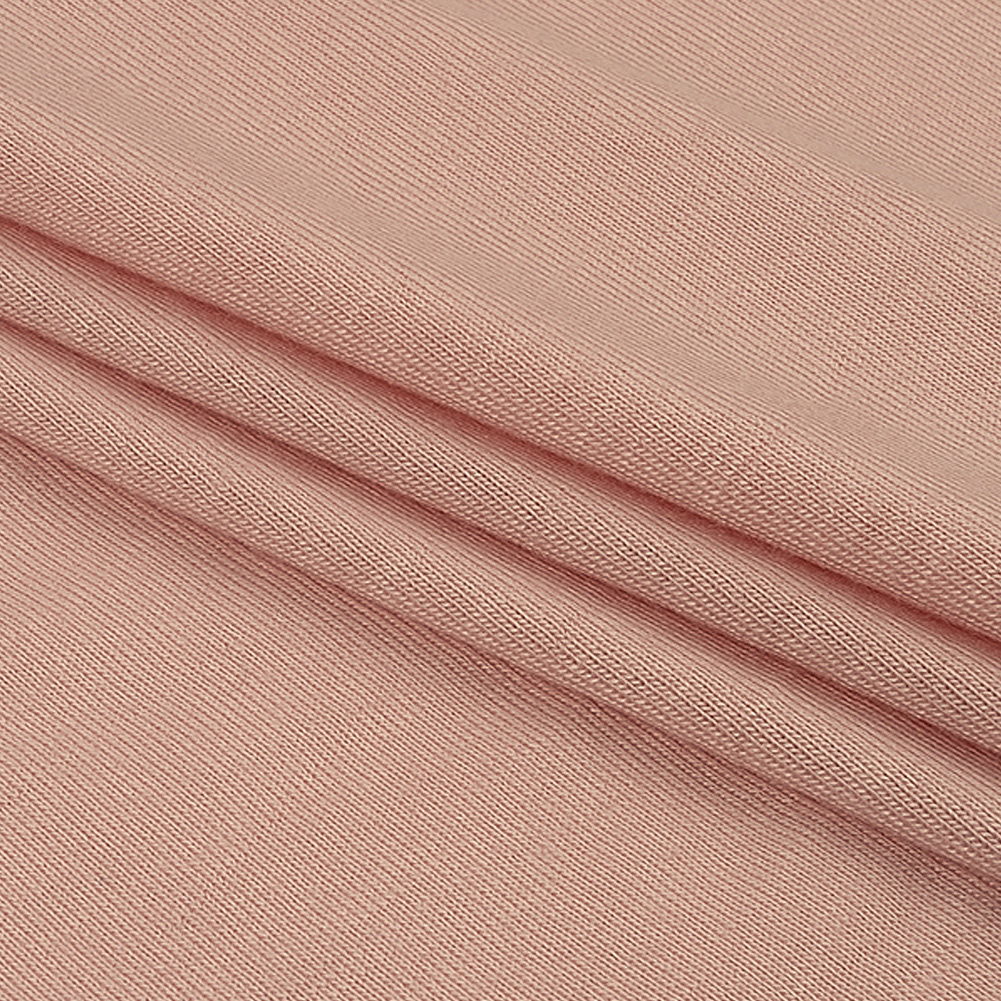 Wearing our Coral Blush Stretch Rayon Jersey, you'll have everyone blushing! With a light coral color, subtle sheen and sumptuously soft hand, it's no wonder this fabric feels so heavenly. With a slightly more than 75% widthwise stretch, plus some give along the width, the drape is fluid and rippling, characteristic of a lightweight jersey. Craft loungewear and lingerie perfect for cozy Sundays, leggings and tank tops for layering, or even lightweight cardigans. Note that as this fabric is translucent, a self-lining or layering may be used to achieve full opacity, if desired.