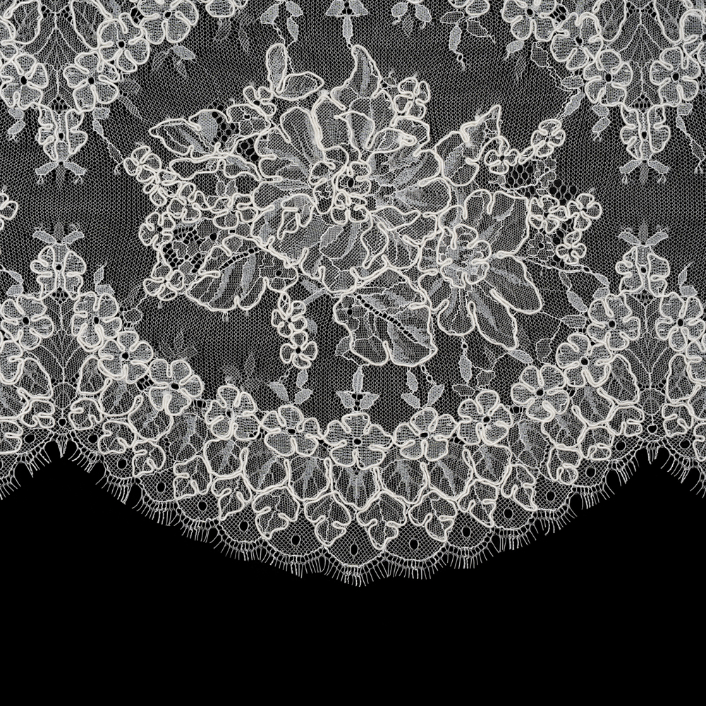 Corded Chantilly Lace with Scalloped Eyelash Edges - 12" - Ivory and White Floral Rings