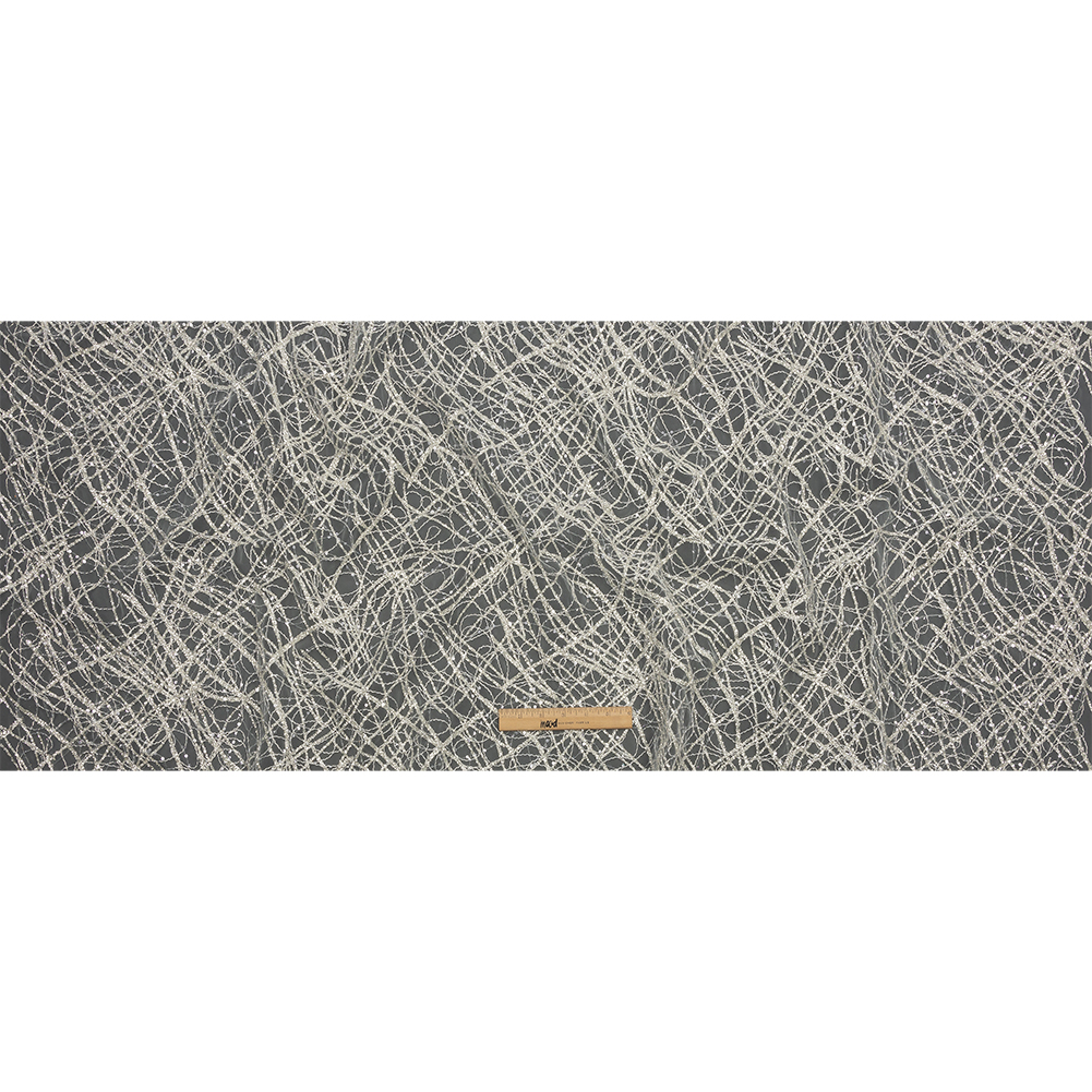 Sparkle like the starry night sky with this White and Metallic Silver Abstract Corded and Sequined Glitter Tulle! In an enchanting web, metallic silver cords, glitter-encrusted lines, and threads of sequins are intertwined atop a white tulle base. With a malleable drape and crisp, tactile hand, the tulle is ideal for overlays on high-end gowns, special event attire, and even hair accessories! Sheer, a lining is recommended for complete opacity where desired.