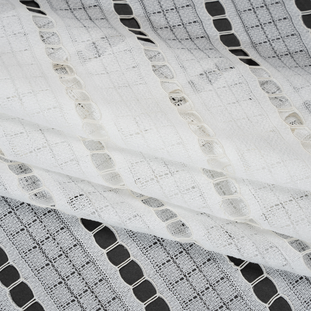 Plot your next design atop this Ivory Squares and Stripes Corded Lace—featuring a soft, slightly tactile hand and fluid drape.