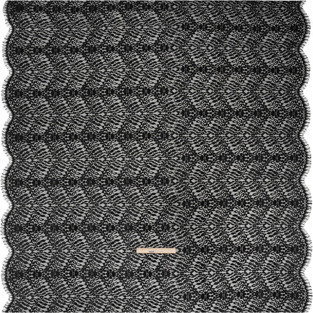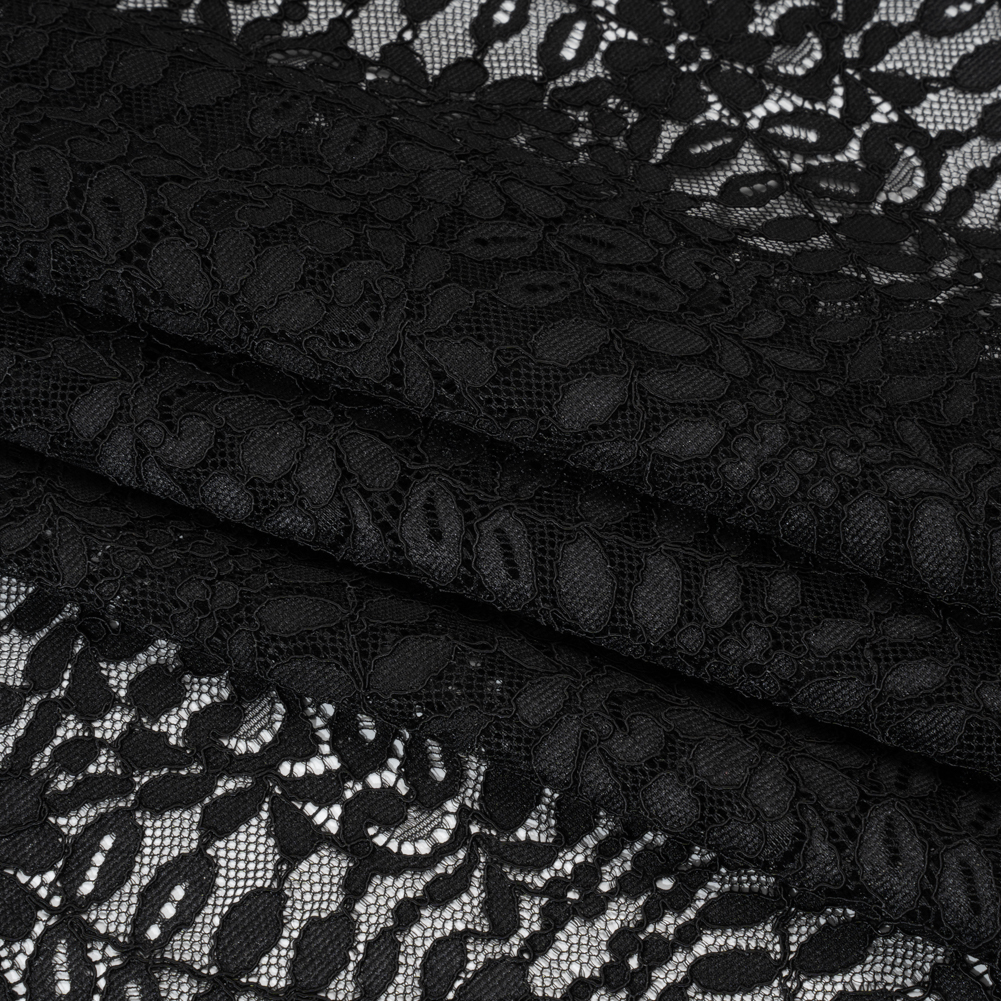Light some candles and turn on your favorite movie for the ultimate self-care night with this Black Flowers and Leafy Vines Corded Lace Panel with Finished Edges—featuring a tactile hand and flexible drape.Suggested Projects: Dresses, Skirts, Blouses, LingerieContent: 43% Nylon, 31% Cotton, 13% Polyester, 13% RayonStretch: NoneOpacity: SheerFlowers and leafy vines grow and climb across this black corded lace panel, complete with finished, fringe edges. This particular fabric has a soft silky feel with a tactile hand—thanks to the thin cords running over the design—and features a heavy yet flexible drape. Use this lace panel to create elegant gowns with long trains, mock-collar blouses to be paired with structured trousers, or some lavish lingerie. Due to the nature of lace, some portions of this fabric are open and it has a sheer opacity overall, so a lining may be desired for opacity. Please note: This is a panel that measures 50” by 60”.