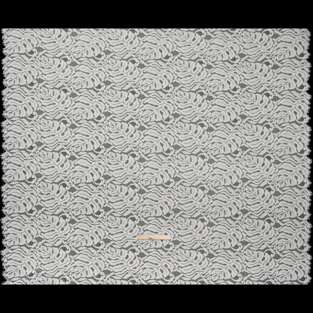 Feel the breeze blow through this Ivory Tropical Leaves Corded Lace Panel with Organic Finished Edges—featuring a soft, tactile hand and flexible drape.Suggested Projects: Dresses, Skirts, Shirts, BlousesContent: 36% Rayon, 35% Cotton, 29% NylonStretch: NoneOpacity: SheerLarge tropical leaves unfurl across this ivory lace panel, complete with organic finished edges. This particular fabric has a soft silky feel with a tactile hand—thanks to the thin cords running over the design—and features a heavy yet flexible drape. Use this lace panel to create elegant gowns with long trains, mock-collar blouses to be paired with structured trousers, or some sheer button-up shirts for tropical vacations. Due to the nature of lace, some portions of this fabric are open so a lining may be desired for opacity. Please note: This is a panel that measures 56” by 60”.