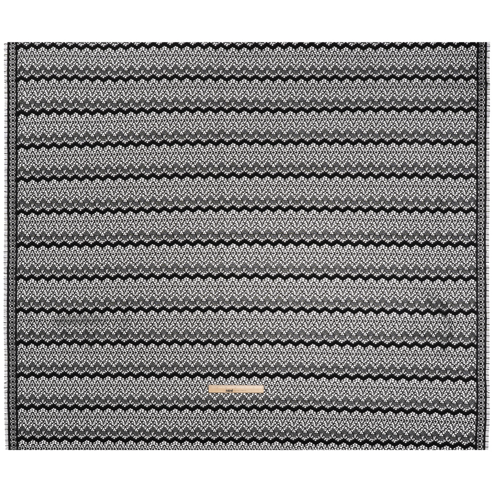 Corded Lace with Eyelash Fringe Edges - Black Zig Zag Stripes