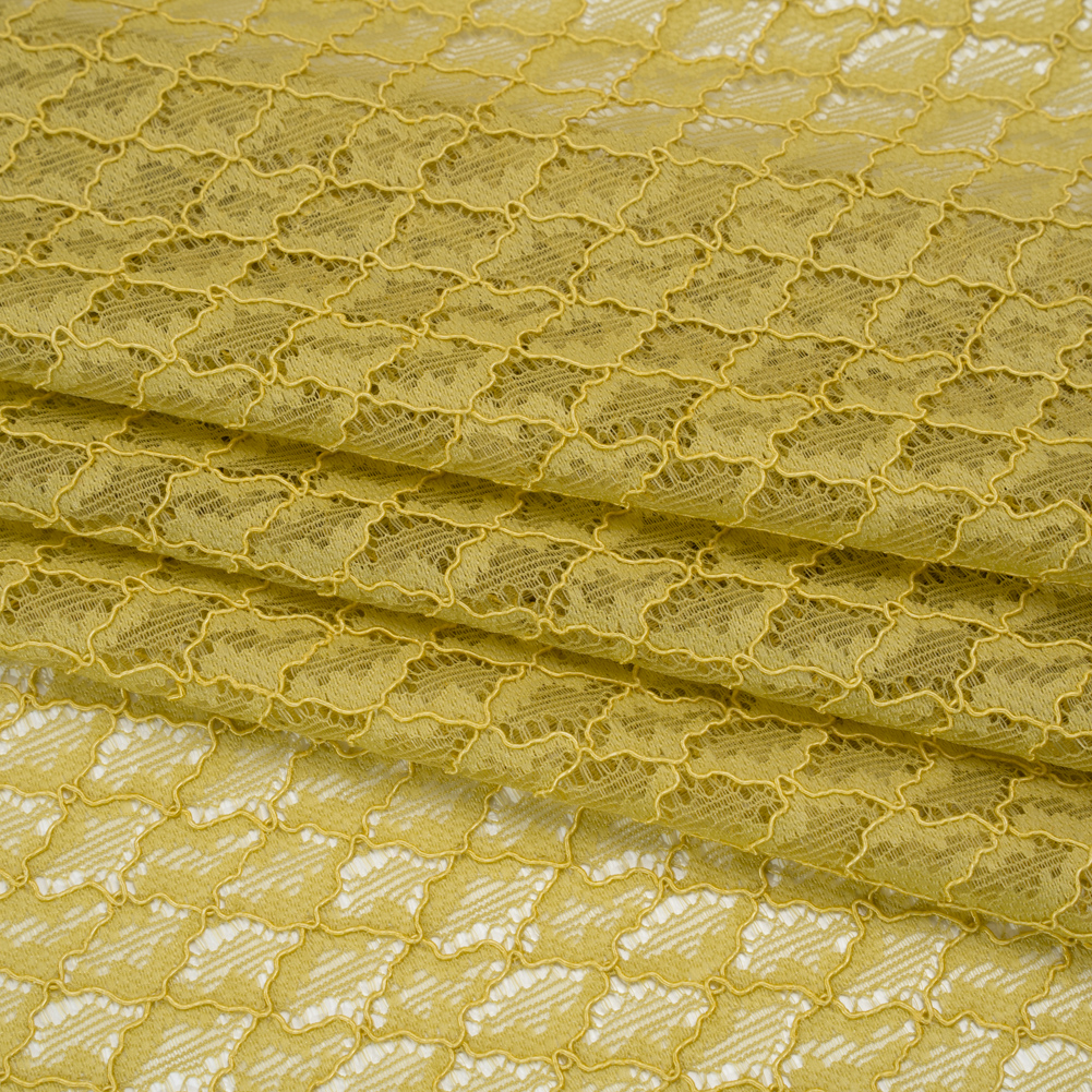 Zest up your evening wardrobe with this Chartreuse Diamond Lattice Corded Lace with Finished Eyelash Edges—featuring a soft, tactile hand and fluid drape.Suggested Projects: Blouses, Skirts, Pants, DressesContent: 70% Nylon, 30% RayonStretch: Warpwise Mechanical GiveOpacity: SheerCords of luminous chartreuse overlap across this chartreuse lace in a diamond lattice design, finished eyelash edges making completing your projects that much easier. With a fluid drape, soft, slightly textured hand, and gentle warpwise give, this lace is perfect for crafting loose, flowing silhouettes. Imagine waterfall skirts that catch the breeze, breezy button-ups, sheer blouses, flowing bell-bottom pants, and more. Sheer by nature, it works beautifully as a panel or with a lining for added opacity.Please Note: This is a panel that measures around 50/52” by 50”.