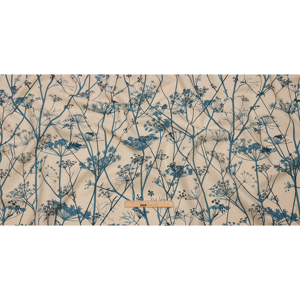 Cotton and Linen Canvas Print - Air Force Blue Chervil Silhouettes - British Imported