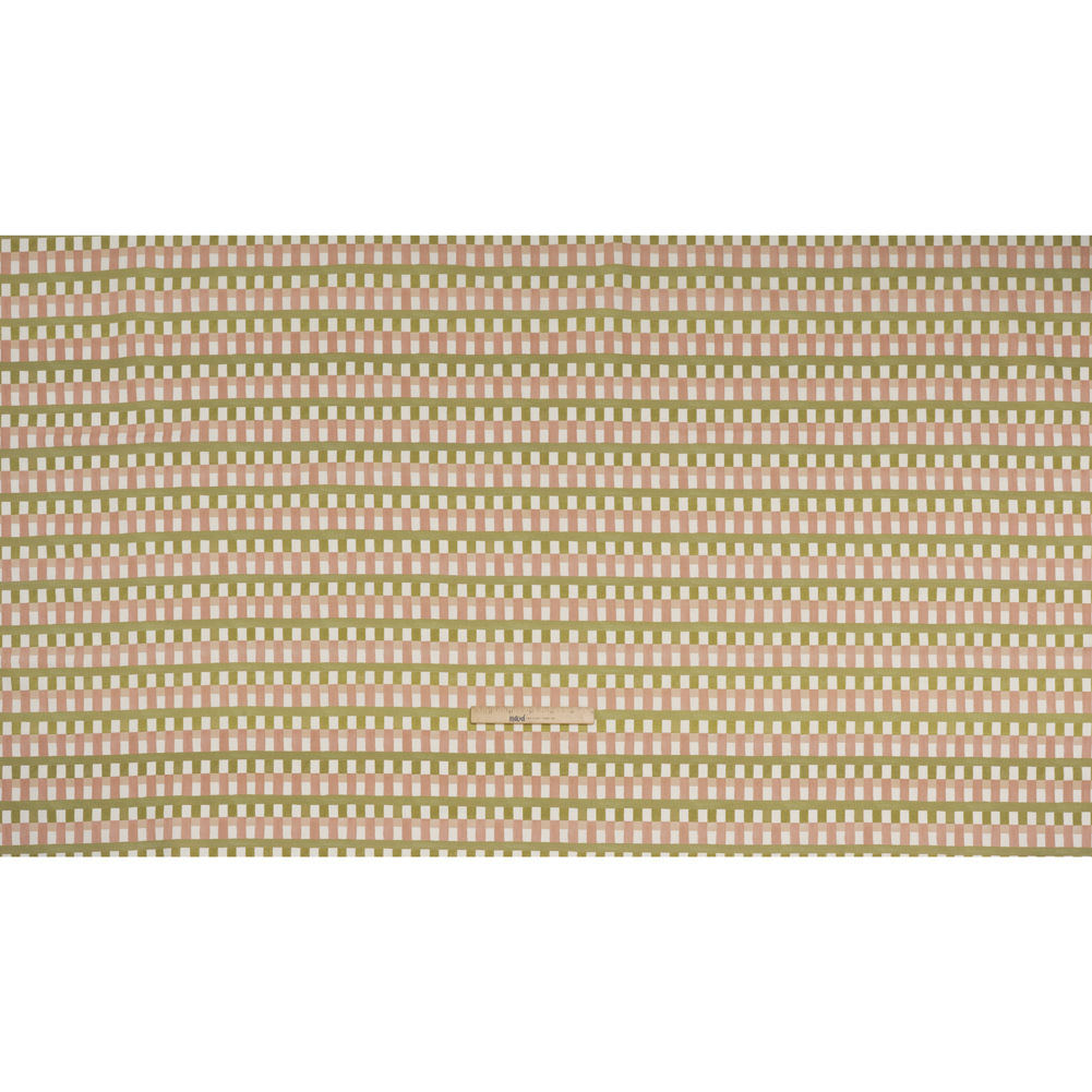Nature takes angular form across this Blossom Geometric Block Striped Cotton and Linen Canvas—featuring a smooth, lightly textured hand and semi-structured drape.Suggested Projects: Curtains, Throw Pillows, Headboards, JacketsContent: 85% Cotton, 15% LinenStretch: NoneOpacity: Slightly TranslucentHorizontal olive green and pale pink stripes stretch across a cream ground, their rhythm playfully interrupted by vertical olive green and blossom pink blocks. The artist in you will be captivated by canvas—a fabric that dances between rustic charm and refined elegance, ready to find its place in living rooms, kitchens, bedrooms, and even wardrobes. With cotton and linen lending it an easy, breezy nature, its smooth, lightly textured hand and semi-structured drape make it perfect for drapery, headboards, throw pillows, and curtains—or, for the fashion-minded, structured jackets and timeless tote bags. Slightly translucent, it pairs beautifully with a lining for added opacity and polish, if taking the fashion route.