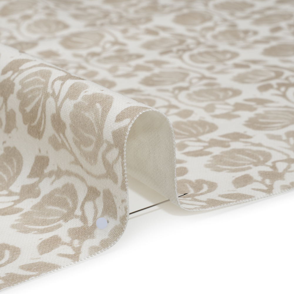Tender blooms climb up your designs atop this Natural Block Print Florals Cotton and Linen Canvas—featuring a dry, lightly tactile hand and semi-structured drape.Suggested Projects: Curtains, Throw Pillows, Headboards, JacketsContent: 85% Cotton, 15% LinenStretch: NoneOpacity: Slightly TranslucentBlock-print inspired flowers climb gracefully across the off-white ground in soothing hues of cool beige, lending artisanal charm and breezy elegance to the fabric. The artist in you will be captivated by canvas—a fabric that dances between rustic charm and refined elegance, ready to find its place in living rooms, kitchens, bedrooms, and even wardrobes. With cotton and linen lending it an easy, breezy nature, its smooth, lightly textured hand and semi-structured drape make it perfect for drapery, headboards, throw pillows, and curtains—or, for the fashion-minded, structured jackets and timeless tote bags. Slightly translucent, it pairs beautifully with a lining for added opacity and polish, if taking the fashion route.