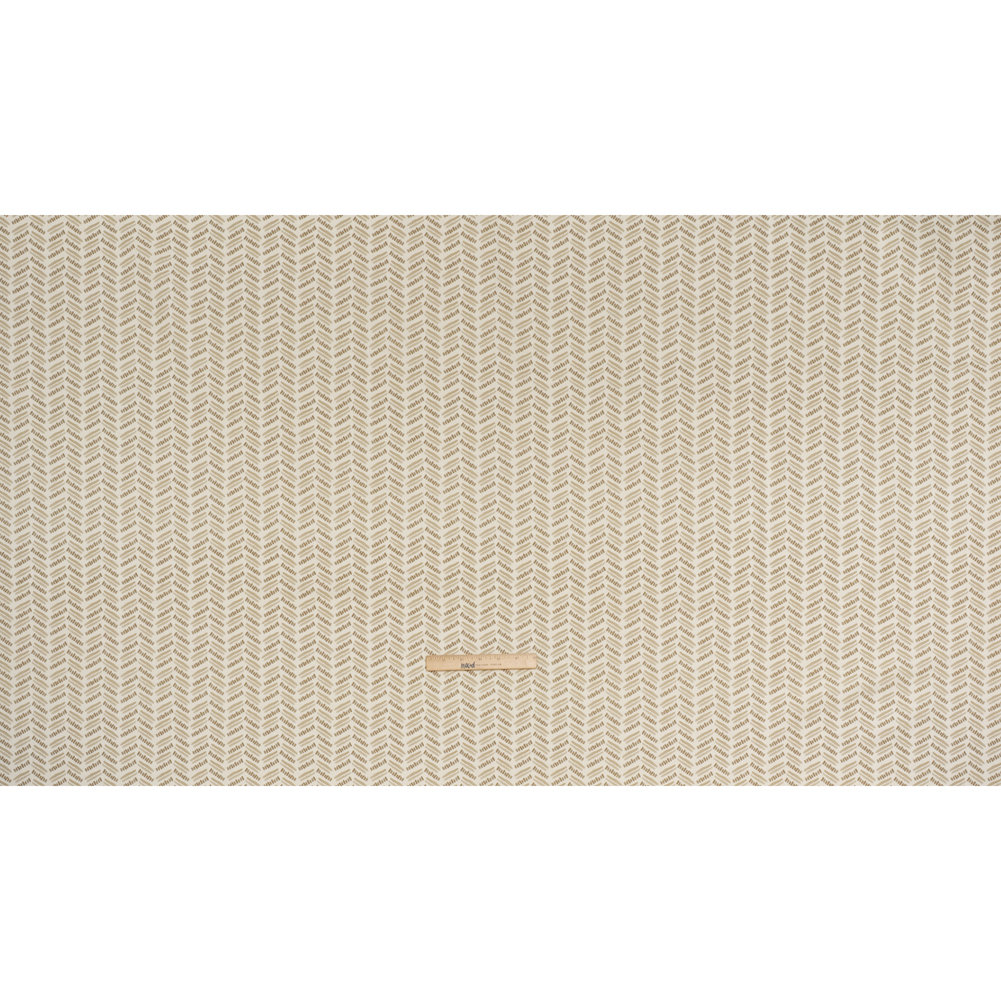 Weave earthly inspiration into your interior with this Natural Watercolor Herringbone Chevron Cotton and Linen Canvas—featuring a smooth, lightly textured hand and semi-structured drape.Suggested Projects: Curtains, Throw Pillows, Headboards, JacketsContent: 85% Cotton, 15% LinenStretch: NoneOpacity: Slightly TranslucentA bold artist’s brush sweeps watercolor shades of taupe and brown across a cream background, forming a playful herringbone-chevron pattern alive with vibrant streaks and dots. The artist in you will be captivated by canvas—a fabric that dances between rustic charm and refined elegance, ready to find its place in living rooms, kitchens, bedrooms, and even wardrobes. With cotton and linen lending it an easy, breezy nature, its smooth, lightly textured hand and semi-structured drape make it perfect for drapery, headboards, throw pillows, and curtains—or, for the fashion-minded, structured jackets and timeless tote bags. Slightly translucent, it pairs beautifully with a lining for added opacity and polish, if taking the fashion route.