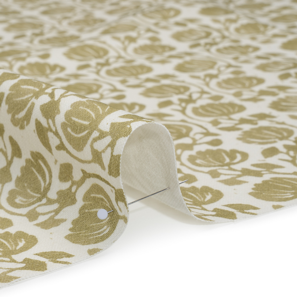 Cotton and Linen Canvas Print - Olive Block Print Florals - British Imported