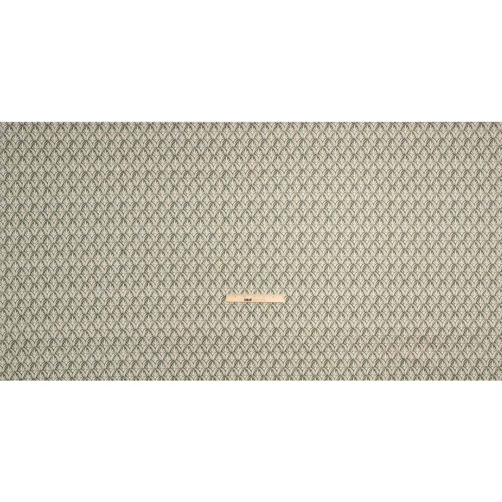 An enchanted wooded palace conjured the design of this British Imported Olive Floral Arches Printed Cotton and Linen Canvas. A forest green background, hazy with light and dark shades, hosts an architectural pattern of floral archways. The pebbly hand, semi-structured drape, and slight transparency create a durable work of art for understated drapery and light upholstery projects.The natural texture of canvas fabrics is rustic in appearance, curating ease and refinement in your home. This simple pattern charms kitchens with valances and inspires throw pillows and headboards—plus, in admiration of its stability, wardrobes can be refreshed with structured jackets and tote bags.