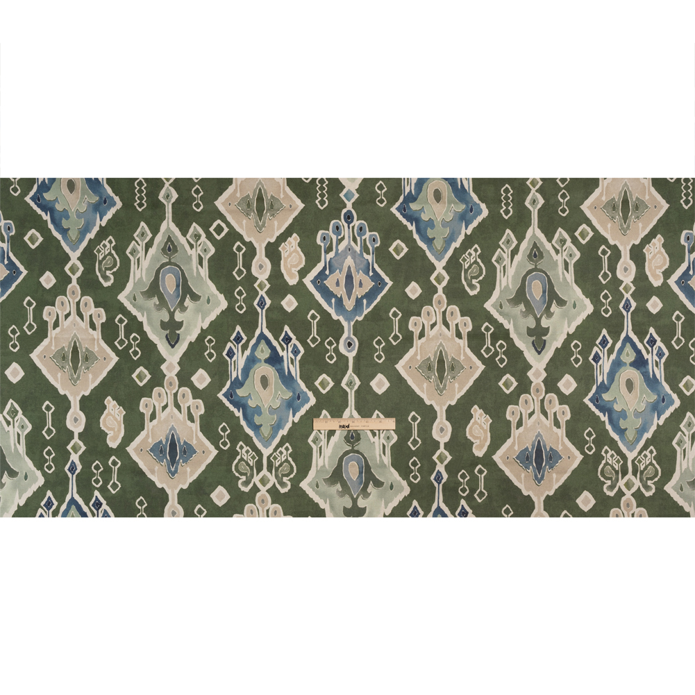 Organic colors and detailed designs bring your space alive with this British Imported Olive Painted Diamonds Printed Cotton and Linen Canvas! Printed canvas fabrics sway between rustic and refined, offering themselves like a piece of art to living rooms, kitchens, bedrooms, and even wardrobes—while ideal for curtains and light upholstery (like headboards and ottomans), canvas is also great for structured jackets and tote bags!This canvas displays ornate blue, sage, and beige diamonds on an olive green face; its pebbly texture and semi-structured drape are attributed to the linen and cotton blend. While mostly opaque, a lining will add more opacity and structure.