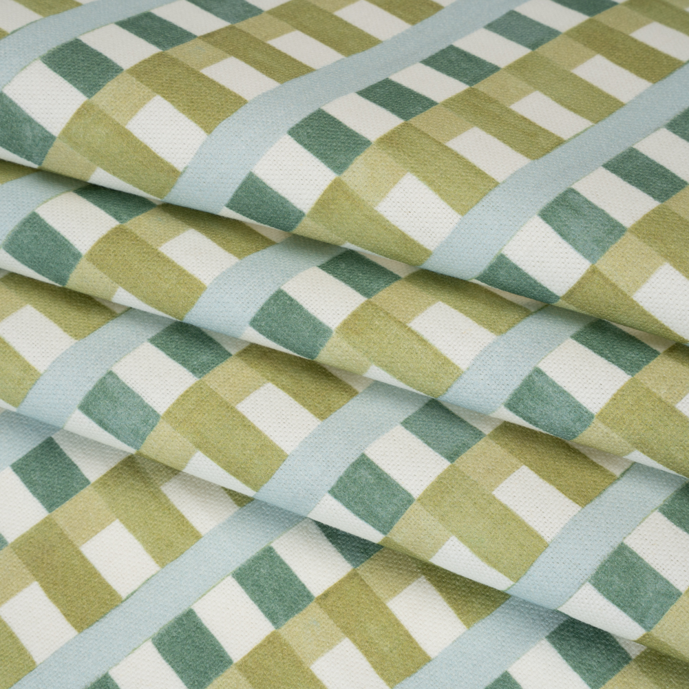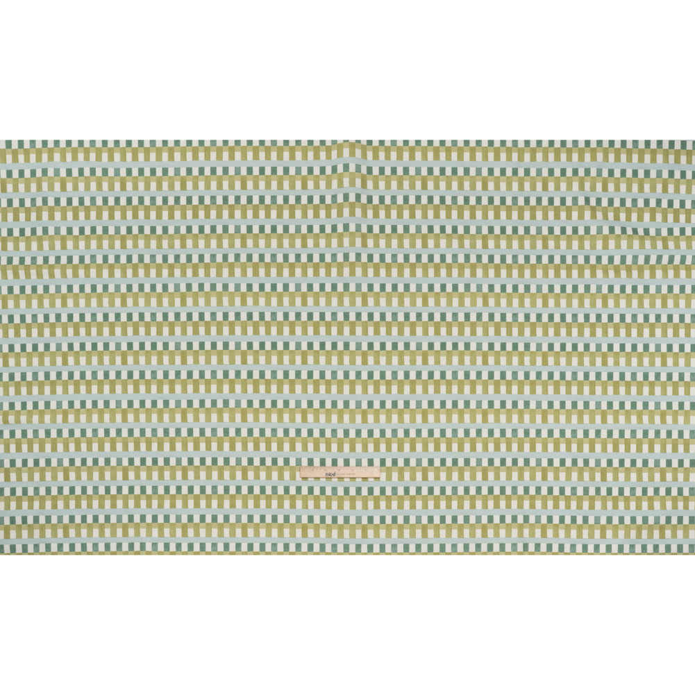 This Teal Geometric Block Striped Cotton and Linen Canvas is sure to s-teal the show—featuring a smooth, lightly textured hand and semi-structured drape.Suggested Projects: Curtains, Throw Pillows, Headboards, JacketsContent: 85% Cotton, 15% LinenStretch: NoneOpacity: Slightly TranslucentHorizontal light blue and olive green stripes stretch across a cream ground, their rhythm playfully interrupted by vertical olive green and teal blocks. The artist in you will be captivated by canvas—a fabric that dances between rustic charm and refined elegance, ready to find its place in living rooms, kitchens, bedrooms, and even wardrobes. With cotton and linen lending it an easy, breezy nature, its smooth, lightly textured hand and semi-structured drape make it perfect for drapery, headboards, throw pillows, and curtains—or, for the fashion-minded, structured jackets and timeless tote bags. Slightly translucent, it pairs beautifully with a lining for added opacity and polish, if taking the fashion route.