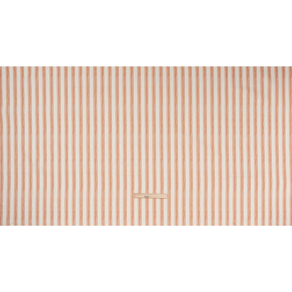You kiln not go wrong with this Terracotta Stripes and Dots Cotton and Linen Canvas—featuring a smooth, lightly textured hand and semi-structured drape.Suggested Projects: Curtains, Throw Pillows, Headboards, JacketsContent: 85% Cotton, 15% LinenStretch: NoneOpacity: Slightly TranslucentBlush pink stripes and terracotta red dots dash across a cream ground, inviting you to follow their trail to your design destination. The artist in you will be captivated by canvas—a fabric that dances between rustic charm and refined elegance, ready to find its place in living rooms, kitchens, bedrooms, and even wardrobes. With cotton and linen lending it an easy, breezy nature, its smooth, lightly textured hand and semi-structured drape make it perfect for drapery, headboards, throw pillows, and curtains—or, for the fashion-minded, structured jackets and timeless tote bags. Slightly translucent, it pairs beautifully with a lining for added opacity and polish, if taking the fashion route.