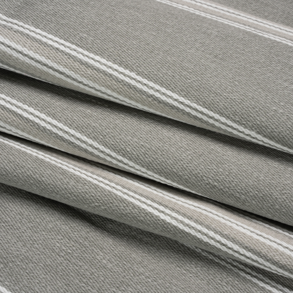 You don't have to read between the lines to understand why we love this British Imported Pebble Striped Cotton and Polyester Drapery Twill! The classic gray and white striped face is simple yet evocative, making for timeless drapes, curtains, valances, and even light upholstery projects. Along with the pebbly hand (attributed to the twill weave), this fabric yields a malleable drape. While entirely opaque, the addition of a lining will soften your window treatments and add protection from the sun.