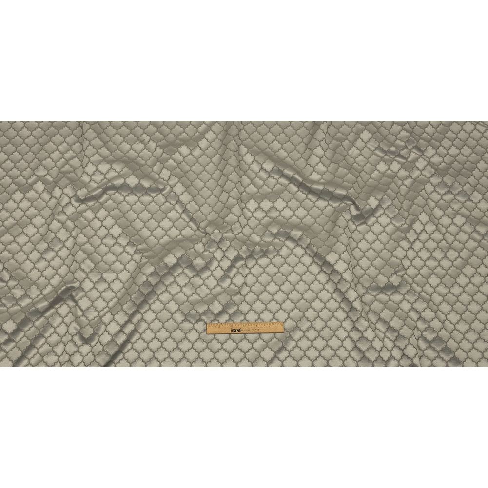 Start your design with a clean slate—and with this British Imported Slate Little Ogees Cotton and Recycled Polyester Drapery Jacquard. An elegant tiled pattern forms from raised gray lines over a luminous silvery ground, with the Jacquard weave providing a textured hand. With a full, flexible drape, craft curtains, drapes, and valances for all windows, or include this material in light upholstery projects like hanging book storage, furniture covers, or poufs. Opaque on its own, a lining can be used to lessen sun damage on drapery projects if desired.MoodEarth Verified: This fabric is made with recycled materials, which are made from post-consumer waste that is transformed into raw fibers, producing a high-quality, eco-friendly fabric. For more information on Mood's sustainability initiatives, check out MoodEarth here.