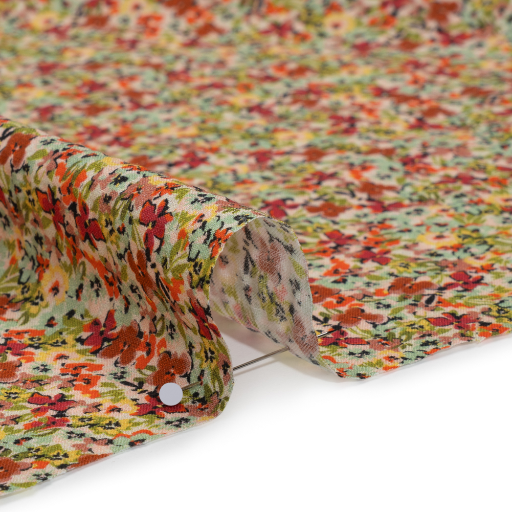 Give your wardrobe a springtime upgrade with this Mood Exclusive Blossom Breeze Cotton and Viscose Striped Seersucker—featuring a soft, tactile hand and fluid drape.Suggested Projects: Blouses, Pants, Skirts, DressesContent: 78% Cotton, 22% ViscoseStretch: NoneOpacity: Slightly TranslucentTiny blooms scatter across this seersucker in shades of pale petal pink, sky blue, berry red, and green. Celebrated for its airy, breathable nature, seersucker features subtle tone-on-tone stripes formed by slackening and tightening threads during weaving. Light and fluttery with a softly puckered texture, it’s ideal for playful pants, breezy blouses, flowing skirts, and summer dresses. Slightly translucent, a lining can be added for full coverage.
