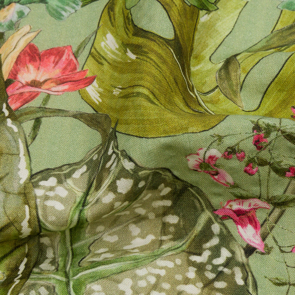 Dance among the rustling leaves of our Mood Exclusive Monstera Mambo Cotton and Viscose Striped Seersucker. Across a sage green stage, lush leaves choose their dance partners from a selection of sweet flowers. Prized for its lightweight, breathable qualities, seersucker is noted for its tone-on-tone stripes, created via pulling and loosening threads during the weaving process. Airy and fluttering in drape, we suggest lightweight blazers, playful pants and jumpsuits, or billowing skirts. Somewhat translucent, a lining may be desired for full opacity.MoodEarth Verified: BCI, or Better Cotton Initiative, focuses on the exchange of good practices, including economic, environmental, and social concerns, in the production of cotton. For more information on Mood's sustainability initiatives, check out MoodEarth here.