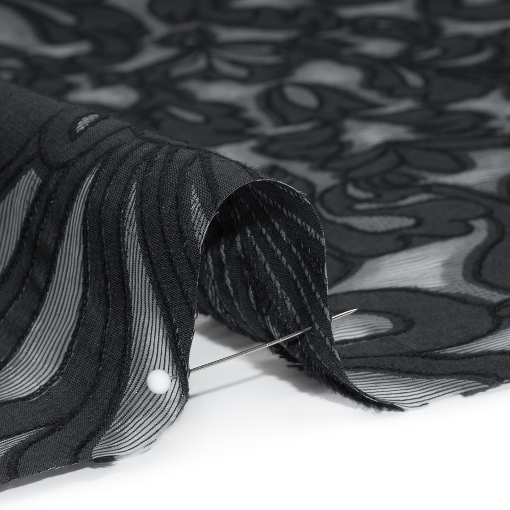Cotton Blend Burnout Jacquard - Charcoal and Black Floral