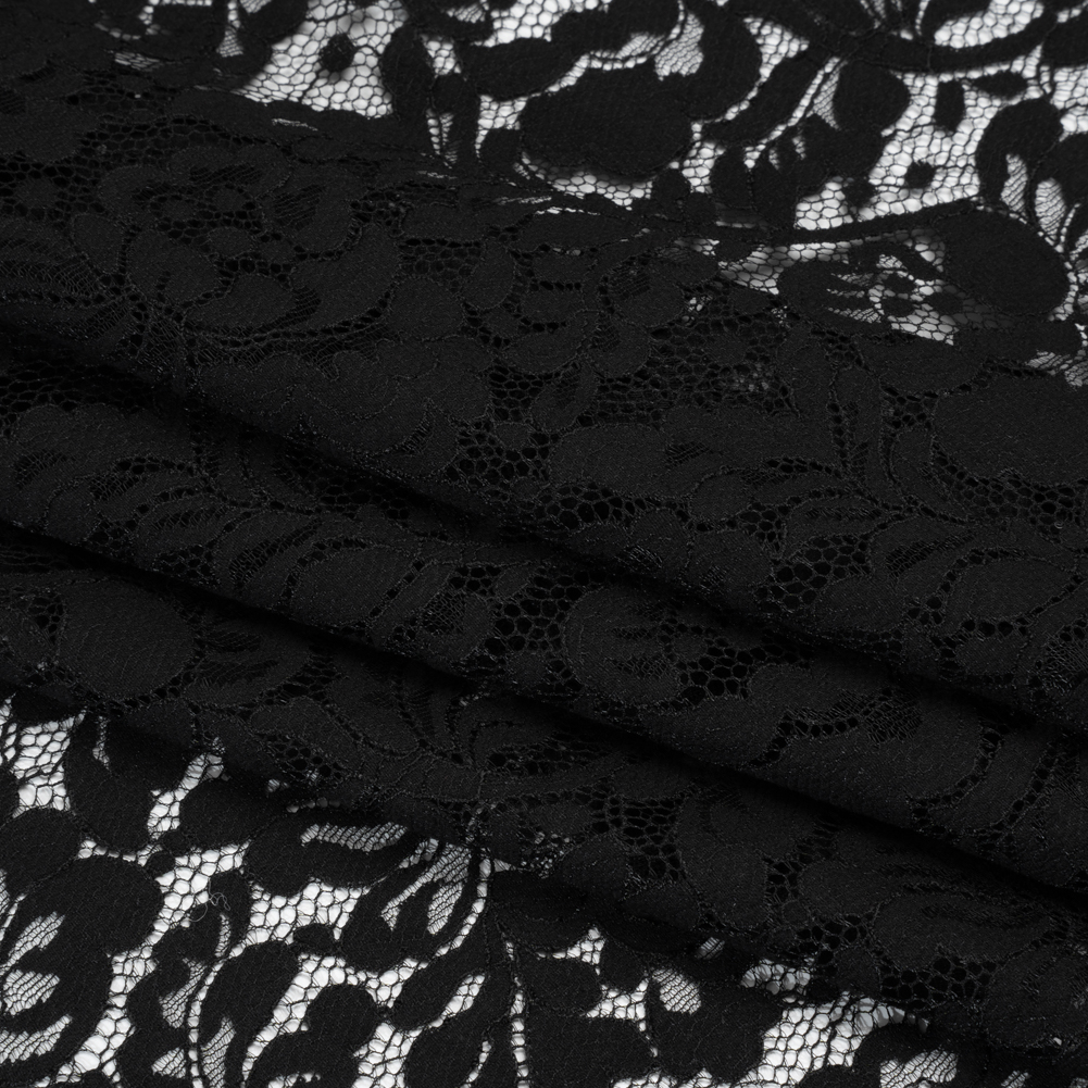 Be ready for last minute black-tie events with this Black Flowers and Leaves Cotton Blend Raschel Lace Panel with Finished Edges—featuring a soft, slightly tactile hand and slightly structured drape.Suggested Projects: Skirts, Shirts, Dresses, JacketsContent: 61% Cotton, 25% Nylon, 14% RayonStretch: NoneOpacity: SheerFlowers and leaves bloom and climb across this black raschel lace panel. A slightly structured drape and soft, slightly tactile hand makes it ideal for airy silhouettes and structured evening wear—with an eyelash fringe finished edge making completing your projects that much easier. With its delicate design, we envision waterfall skirts, breezy button-up shirts, overlays for flowing evening gowns and structured jackets, lingerie, and more! Sheer, due to the lace weave, use it as a panel or insert a lining for more opacity. Please note: This is a panel that measures 45” by 61”.