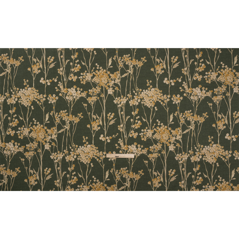The golden harvest of this British Imported Forest Berry Stems Printed Cotton Canvas will warm up your home! Displaying itself like a piece of art, the dry, flat face paints an image of yellowish-green berry trees against a heathered gray sky. The malleable drape, ideal for valances or semi-structured curtains, brings a timeless look into any room. Plus, you can experiment with reupholstery projects like stools and ottomans! As this fabric is slightly translucent, a lining is suggested for total opacity.