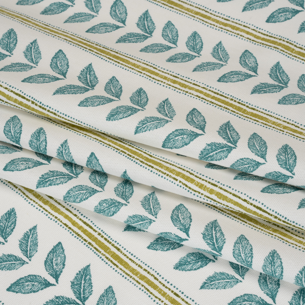 Cotton Canvas Print - Lagoon Leaves and Stripes - British Imported