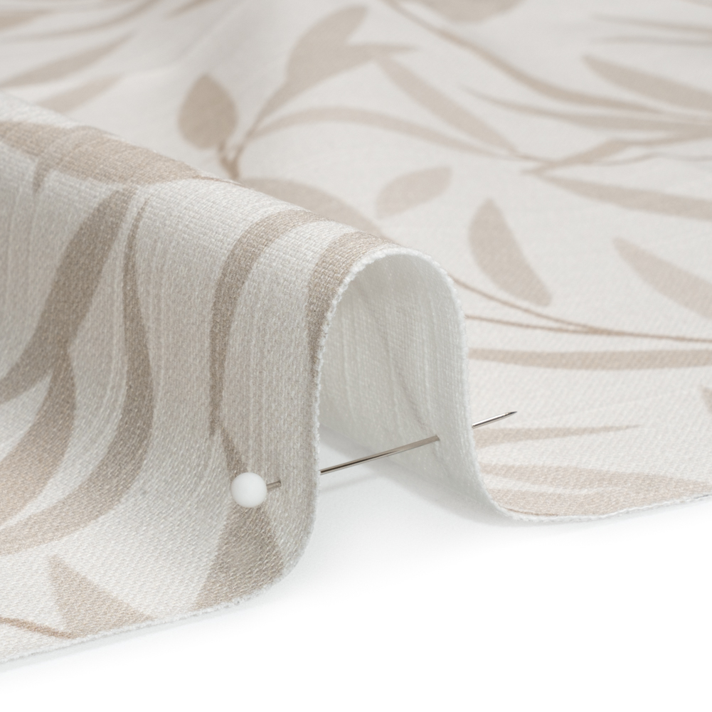 Create art with this British Imported Natural Willow Leaves Printed Cotton Canvas, featuring greige leaves growing madly across a pale gray sky. Printed canvas fabrics sway between rustic and refined, offering their dry hand and slubbed face to formal dining rooms, lived-in family rooms, and everywhere in between. Fairly lightweight and featuring a malleable drape, this fabric is perfect for curtains and light upholstery projects like throw pillows and ottomans. Plus, its versatility reaches your wardrobe—consider tote bags and structured jackets, too! A lining may be desired as it is semi-transparent.