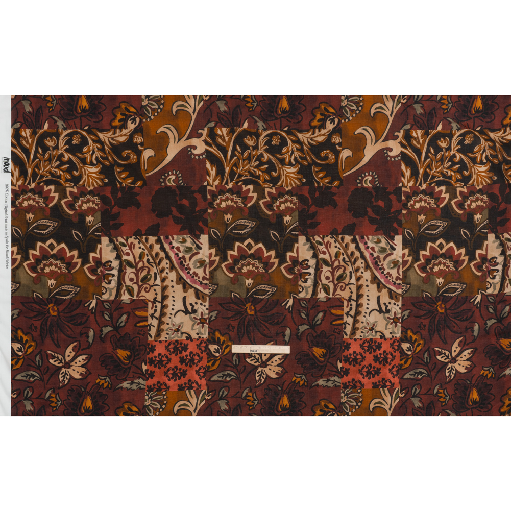 Cotton Crepe - Burgundy, Burnt Orange and Beige Floral Patchwork - Mood Exclusive Bordeaux Blossoms Print