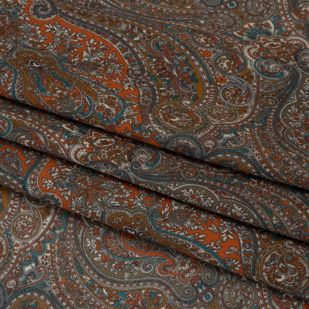Cotton Crepe - Dark Orange, Blue and Brown Paisley - Mood Exclusive Filigree Flow Print