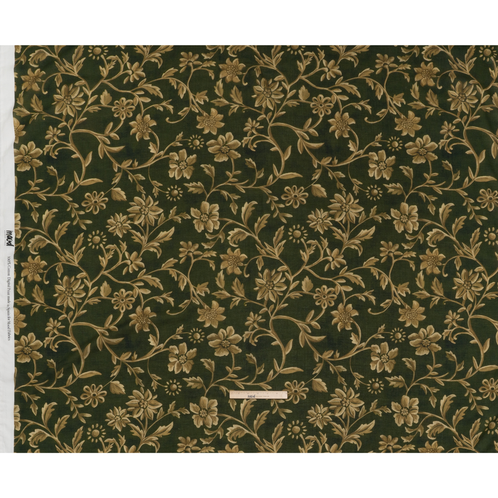 Cotton Crepe – Forest Green and Muted Gold Ornate Floral Vines – Mood Exclusive Gilded Vines Print