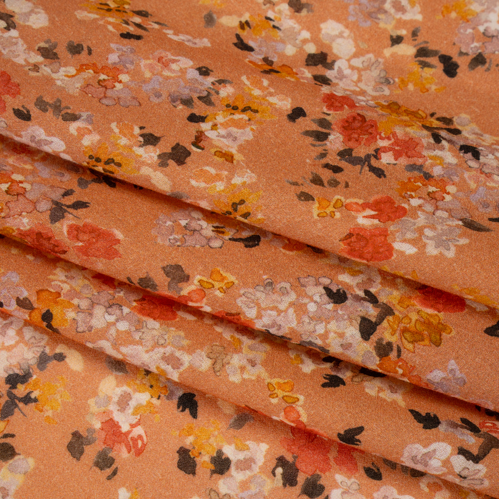 An autumn breeze blows through, bringing this Mood Exclusive Dancing Drifts Cotton Crepe in its wake—featuring a soft, grainy hand and airy drape.Suggested Projects: Blouses, Button-Ups, Skirts, DressesContent: 100% CottonStretch: NoneOpacity: TransparentPetals in red, golden yellow, brown, and beige float across a rich peach sky—an open invitation to embrace the spring breeze, dressed to the nines in your fresh warm-weather wardrobe. Crafted from 100% cotton, this lightweight crepe offers both comfort and breathability, with a soft, grainy texture that elevates both semi-formal and casual styles. Its airy drape effortlessly creates flowy blouses, wrap skirts, dresses, and more. Transparent and breezy, it may benefit from a lining for added opacity and structure.