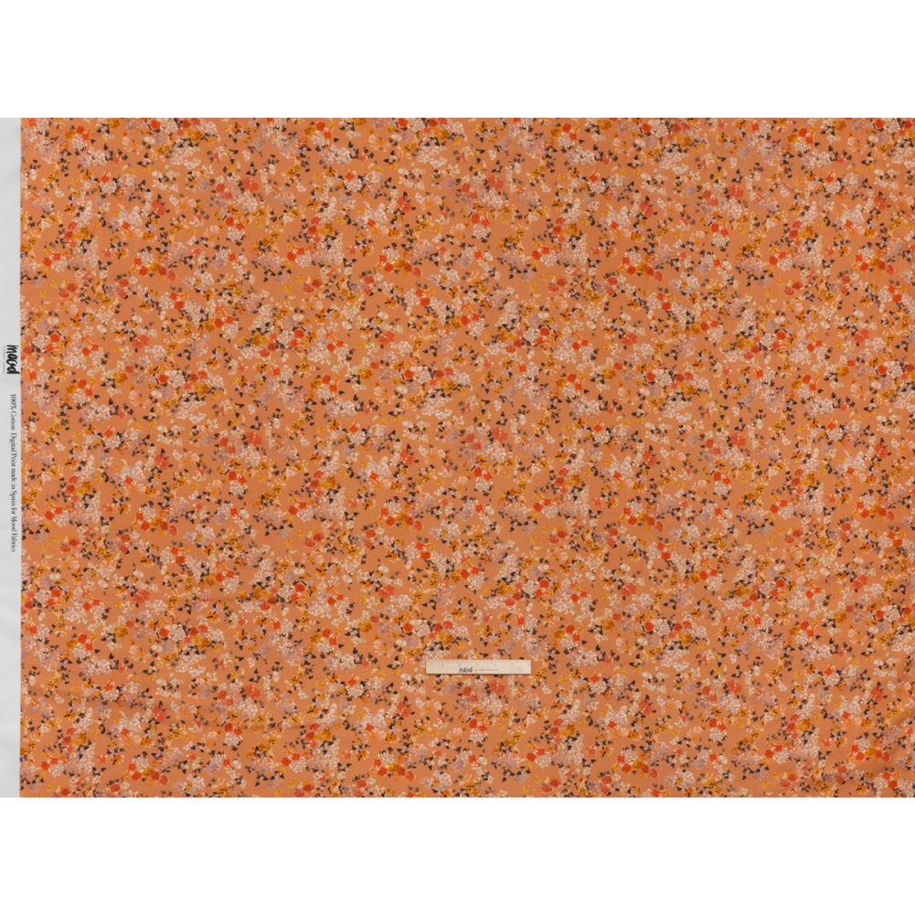 Cotton Crepe – Peach, Red and Golden Yellow Spotty Florals – Mood Exclusive Dancing Drifts Print