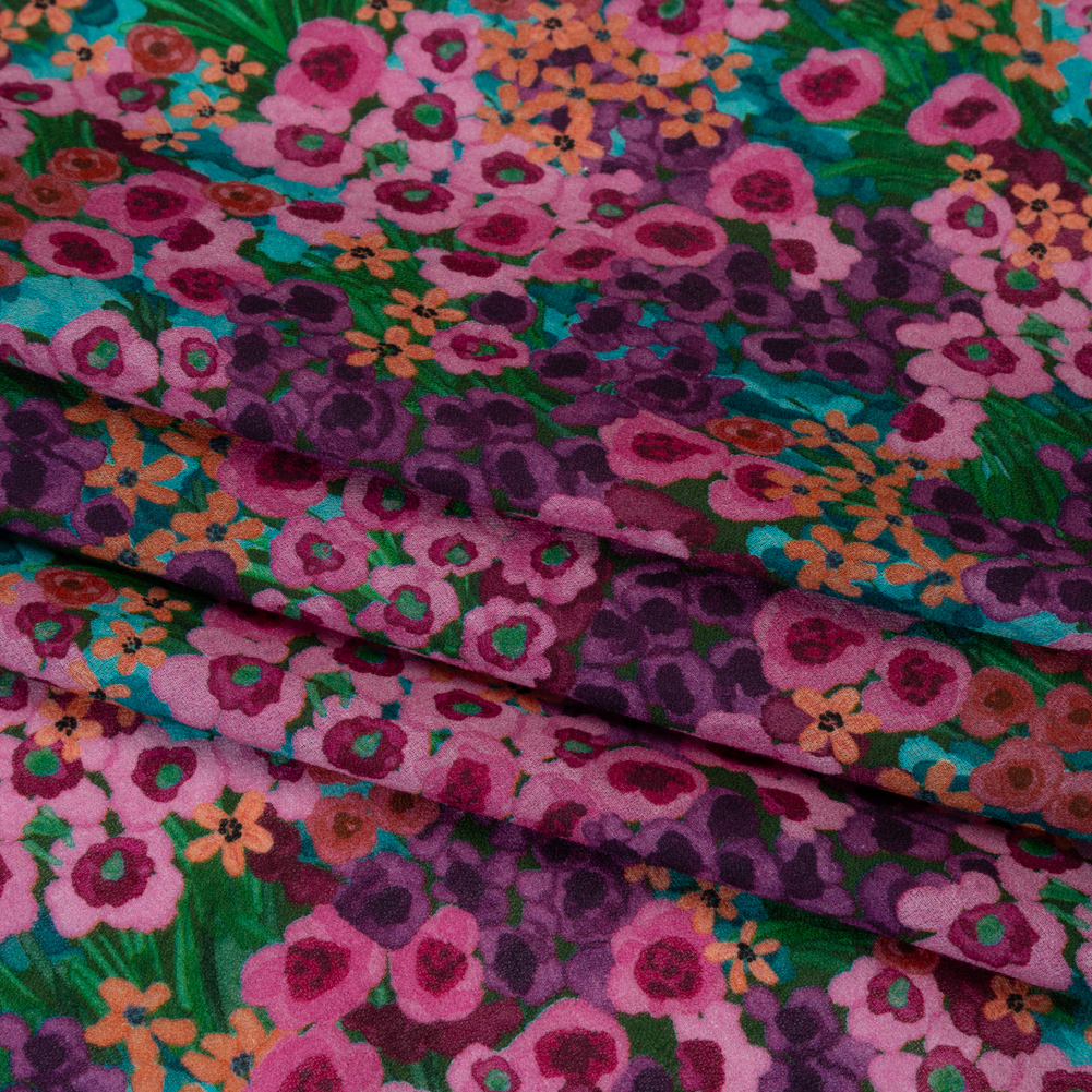 Cotton Crepe - Pink, Purple and Green Popping Flowers - Mood Exclusive Poppy Parade Print