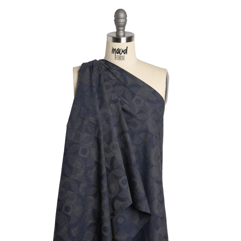 The luxury of this Navy Blue and Gray Circles in Squares Cotton Dobby Shirting is easy math, featuring a crisp, tactile hand and flexible drape.Suggested Projects: Shirts, Dresses, Shorts, VestsContent: 100% CottonStretch: NoneOpacity: Slightly TranslucentSlightly textured and crisp in hand, the geometric circles and squares design alights in navy blue and gray to present a clean matte finish. Lightweight and without stretch, design an assortment of comfortable button-up shirts or create delightful shirt dresses with fluttering kimono sleeves to get the most out of its flexible drape. Slightly translucent, a lining is recommended depending on its application.