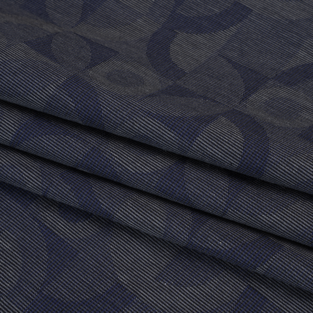 Cotton Dobby Shirting - Navy Blue and Gray Circles in Squares - Deadstock
