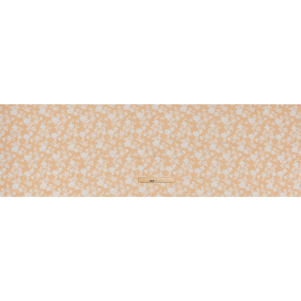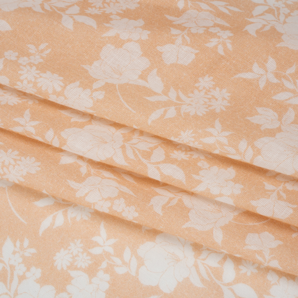 Our Mood Exclusive Beige Sweetly Spring Cotton Gauze arrives on the spring breeze with a display of white florals against a pale peach background.