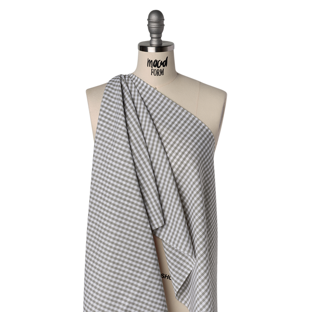 Calm as cobblestone paths, this Gray Cotton 0.25” Gingham carries the timeless rhythm of checks in muted tones. With a cool, crisp hand and breezy drape, it carries the easy spirit of sunlit summer days.Suggested Projects: Shirts, Dresses, Shorts, SkirtsContent: 100% CottonStretch: NoneOpacity: TranslucentA delicate quarter-inch gingham in gray dances across the white cotton base of this fabric. With its soft, cool, and slightly crisp hand paired with an airy drape, it’s perfectly suited for warm-weather wear—echoing the carefree notes of sunny summer afternoons. Lightweight, breathable, and thin, it’s ideal for breezy shirt dresses, playful shorts, casual button-ups, and tiered maxi skirts. Translucent, consider adding a lining for increased opacity or extra structure.
