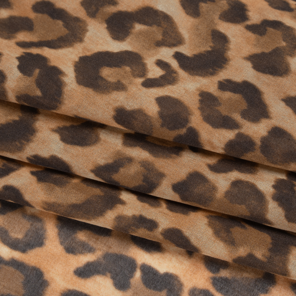 Luxury lives within this Cheetah Spots Cotton Lawn Print—featuring a crisp hand and airy drape.Suggested Projects: Shirts, Skirts, Shorts, DressesContent: 100% CottonStretch: NoneOpacity: SheerStep into the spotlight with this beige, tan, and dark brown cheetah-spotted cotton lawn. Lightweight and crisp to the touch, it features a fine, sheer construction with no stretch and a breezy, airy drape. Perfect for summer blouses, button-up camp shirts, tiered maxi skirts, or strappy warm-weather dresses, it shines in effortless silhouettes. Add a lining where extra opacity or structure is desired.