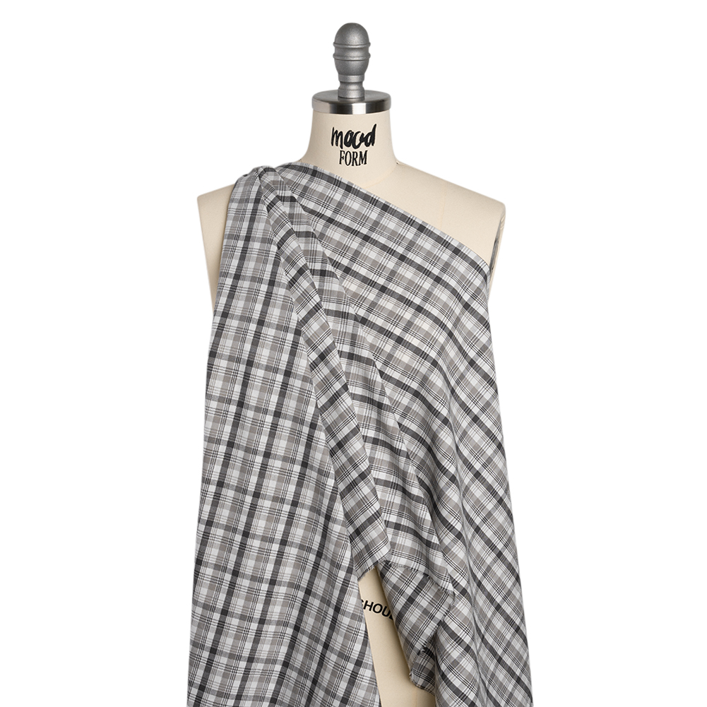 Set your creativity alight with this Charcoal, Gray and White Plaid Cotton Oxford Shirting—featuring a soft, slightly tactile hand and crisp drape.Suggested Projects: Shirts, Pants, Dresses, Lightweight PajamasContent: CottonStretch: NoneOpacity: Mostly OpaqueCharcoal and gray lines overlap at this white shirting, crafting an eye-catching plaid design. Thanks to its Oxford construction it boasts a soft, slightly tactile hand and crisp drape—ready to accompany you anywhere you go, whether it’s to work or to bed! With its incredibly comfortable nature, we envision lightweight pajama sets for lounging around the house, button-downs to wear into the office, shirt dresses for an afternoon coffee date, and more! Mostly opaque, a lining is not necessary for most applications.